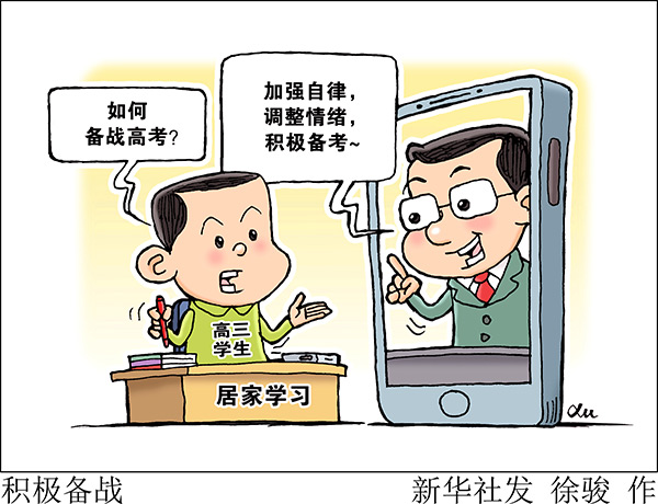 福州某中学语文教师林景文说,积极、进取的学习心态十分重要。虽是线上学习,也可以通过打卡、互动、表扬等方式,帮助学生调整情绪、积极备考。