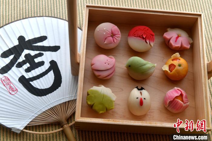 据介绍,和果子,是一种日式佐茶点心,它的外皮由豆子、糖、糯米等食材制成,内馅以五谷果蔬为原料。和果子的制作原料取自自然,外皮上鲜艳的色彩均由可食用的植物色粉调制而成。