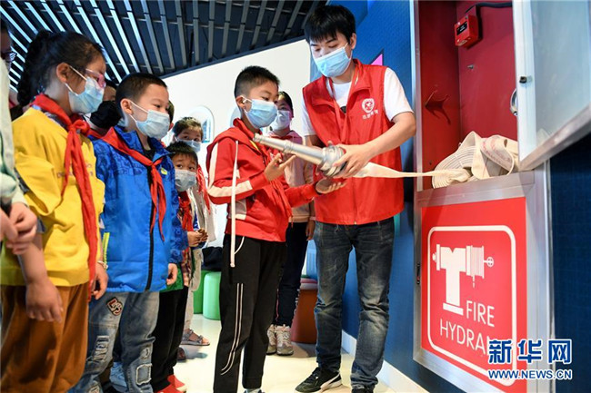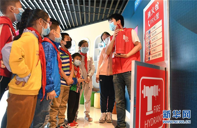 5月10日,合肥市淝南社区的志愿者向辖区儿童讲解灭火设备的使用方法。新华社记者 刘军喜 摄