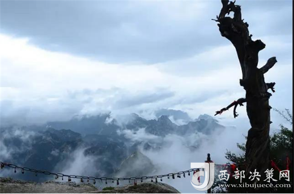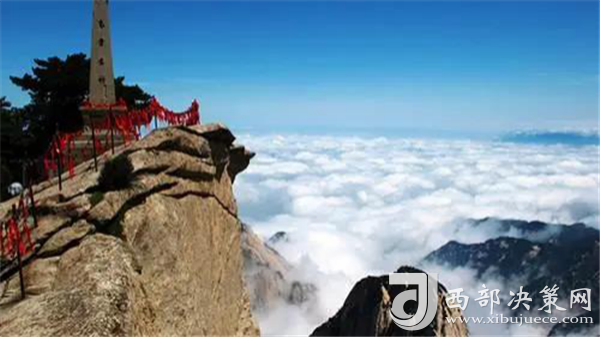 南峰落雁峰 为华山之巅,天近咫尺,星斗可摘。举目环视,但见云海如帛如绵,尽收眼底。