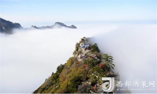 北峰云台峰 上冠景云,下通地脉,巍然独秀,云围雾绕,高低沉浮。