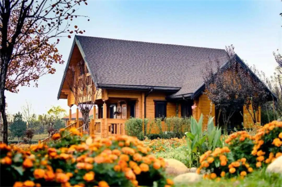 位于游客中心内部,依山而建,总体布局清晰又简约。黄色小木屋别墅在华山山气氤氲的衬托下,显得别致而大气。