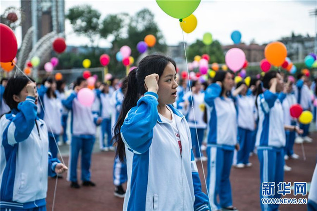 6月27日,乌当中学高三学生在毕业典礼上宣誓。新华社记者 陶亮 摄