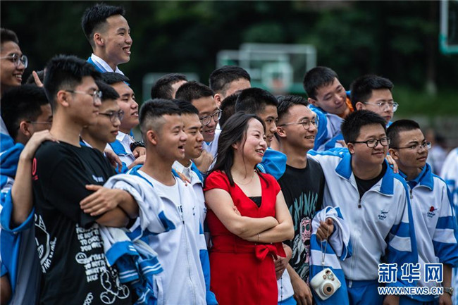 6月27日,同学们和老师合影留念。新华社记者 陶亮 摄