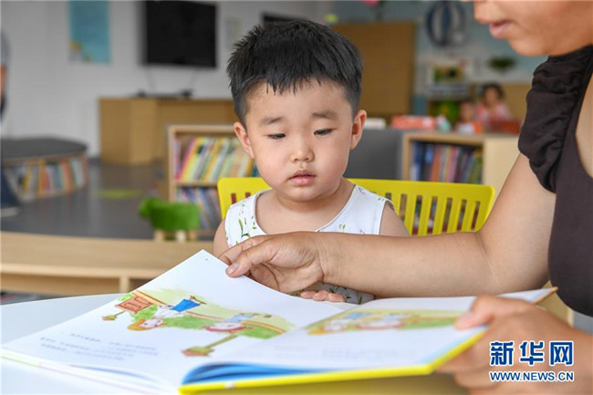7月2日,在长春市少年儿童图书馆平阳社区绘本主题分馆,家长为小朋友讲故事。新华社记者 张楠 摄