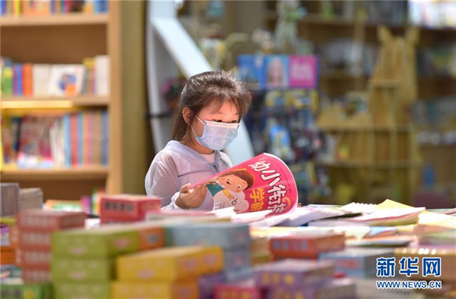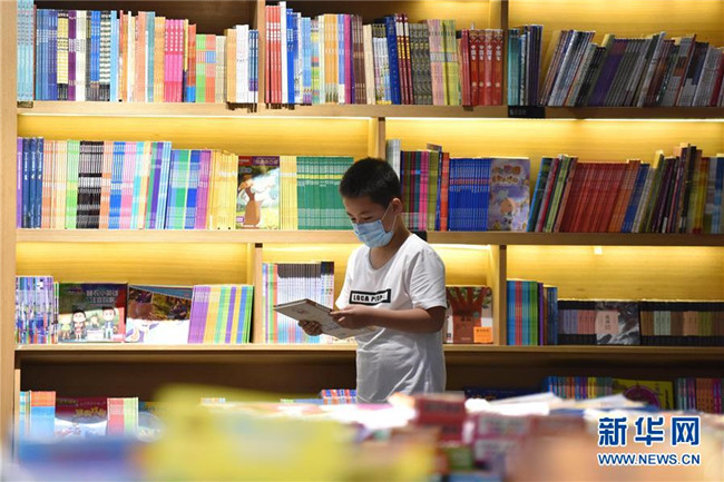 7月5日,一名小朋友在河北省定州市新华书店挑选图书。新华社记者 朱旭东 摄