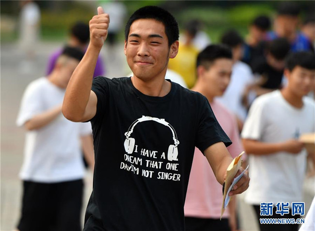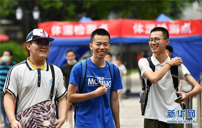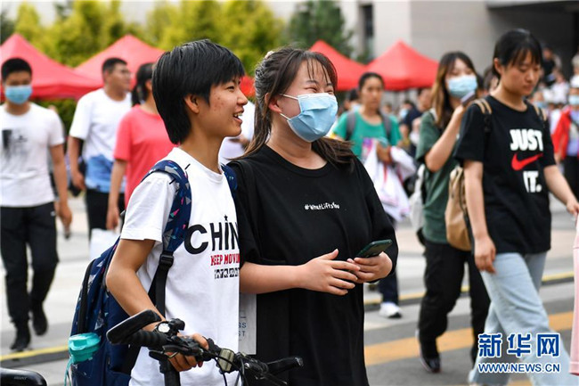 7月8日,考生走出内蒙古自治区呼和浩特市第二中学考点。 当日,全国部分地区2020年高考结束。 新华社记者 徐钦 摄