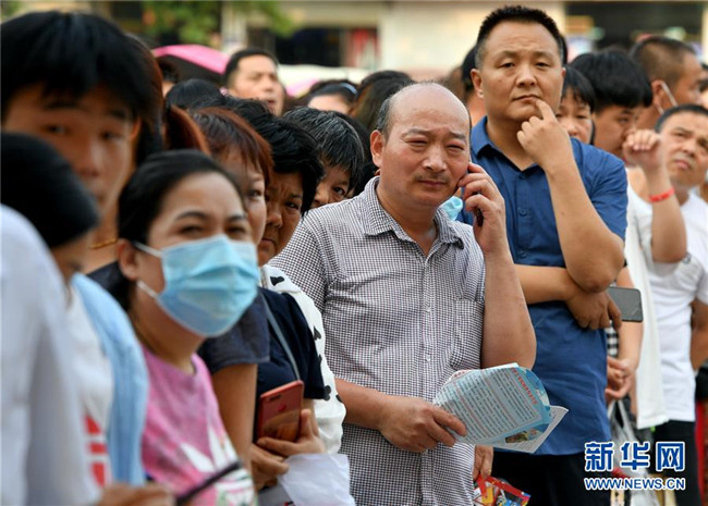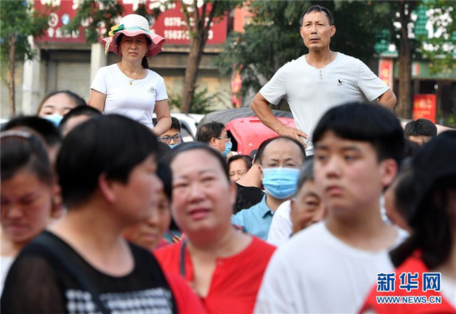 7月8日,在河南省宝丰县第一高级中学考点,家长在考场外等候考生。 当日,全国部分地区2020年高考结束。 新华社记者 李嘉南 摄