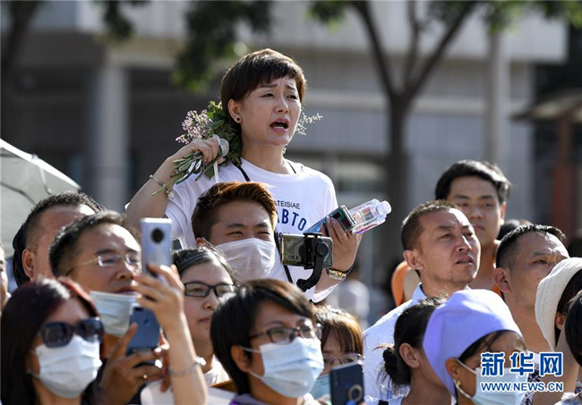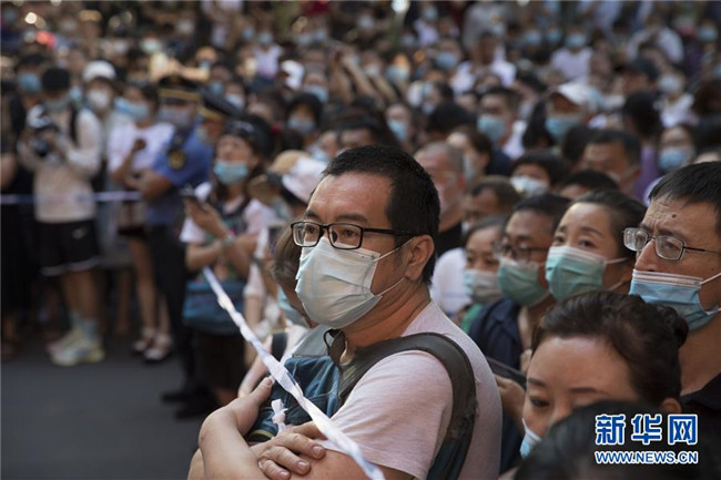 7月8日,在黑龙江省哈尔滨市第三中学考点外,家长们迎接考生。 当日,全国部分地区2020年高考结束。 新华社发(张涛摄)
