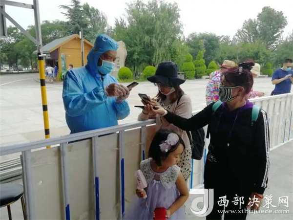 在游客入口处,工作人员正在逐一测量游客体温、查验健康码,没有健康码的,他们要帮助游客注册并认真登记。经检验,一切正常的,恭请入园;体温不正常的,进一步筛查甄别;健康码是黄色的,劝返;健康码是红色的,隔离。