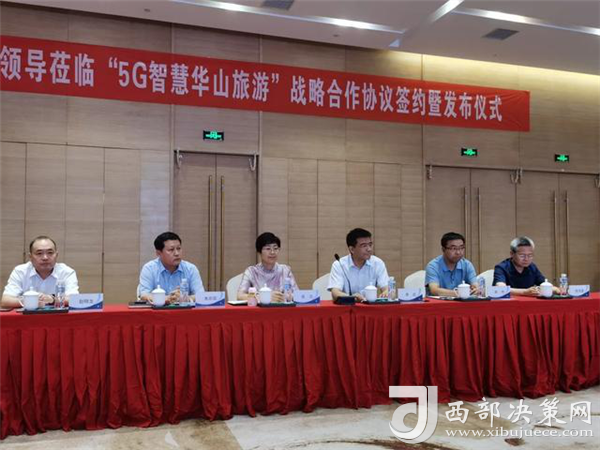 西部决策网讯 7月16日下午,“5G智慧华山旅游”战略合作协议签约暨发布仪式在华山诺富特酒店举行。渭南市人民政府副市长高洁,中国联通陕西省分公司副总经理李武,中共华阴市委书记、华山风景名胜区管理委员会党工委书记朱忠效,渭南市文化和旅游局局长常伟,华山风景名胜区管理委员会党工委副书记、常务副主任赵晓龙,陕西华山旅游集团有限公司党委书记、董事长张泉,渭南市委网信办副主任郭茂盛见证签约并共同启动“5G智慧华山旅游”。华旅集团总经理高江宏与中国联通渭南分公司总经理李亚军代表双方签约。集团副总经理赵江锋与中国联通陕西分公司副总经理李武分别致辞。