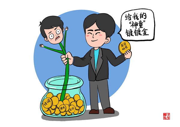 如此“镀金”是害了孩子。学习是一场马拉松,投机取巧和急功近利违背儿童成长规律,名不副实的光环终究会给孩子带来负担,甚至误导孩子一生。父母之爱子,则为之计深远。想让这份爱有个正确的打开方式,就请多倾听孩子的心声,更加关注他们的身体素质、道德情操、交往能力、自理能力,多一份平常心和实事求是,让孩子能够自由健康成长!(文字:董璐 手绘:赵凯)