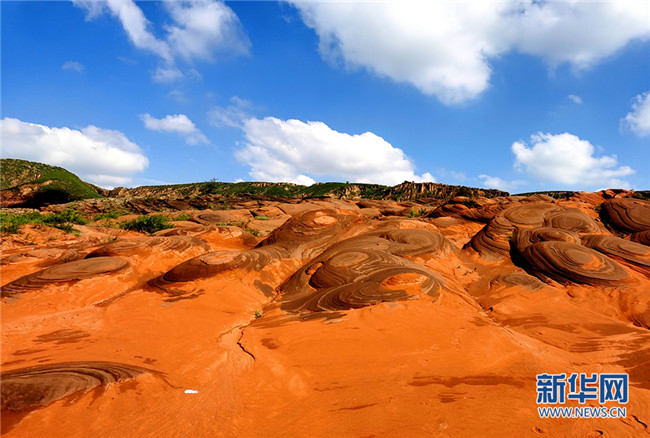 8月19日拍摄的陕西省榆林市靖边县龙州镇丹霞地貌景区。樊悦摄