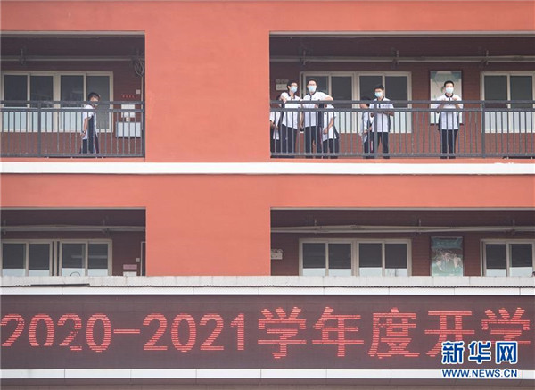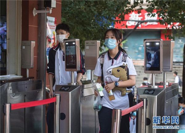 9月1日,武汉中学的学生进入校园。当日,武汉市2842所中小学、幼儿园迎来开学,涉及学生139.9万人,百万学子重返校园。新华社记者肖艺九摄