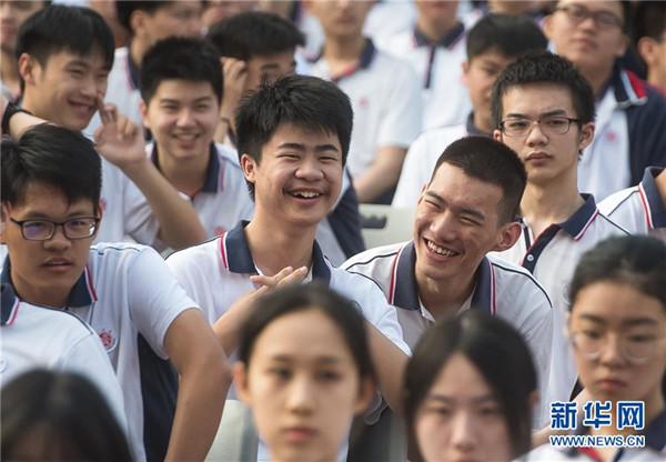 这是武汉中学的学生在开学典礼前(9月1日摄)。9月1日,武汉市2842所中小学、幼儿园迎来开学,涉及学生139.9万人,百万学子重返校园。新华社记者肖艺九摄