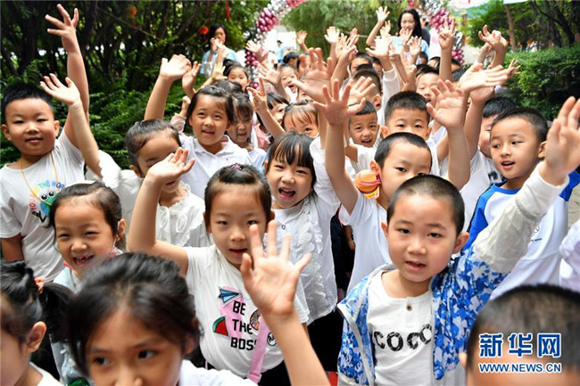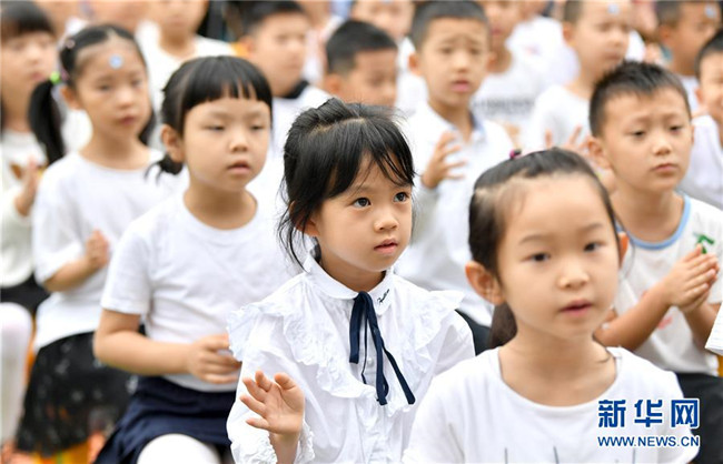 8月31日,西安市新城区后宰门小学一年级新生在开学典礼上。 当日,陕西西安市的多所中小学迎来秋季开学报到。 新华社记者 刘潇 摄