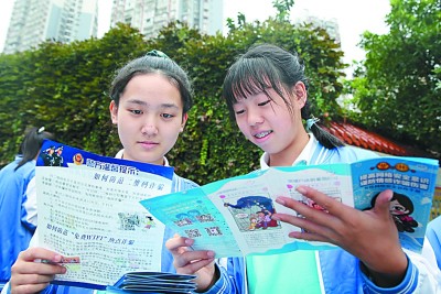 9月15日,四川省内江市东兴初级中学学生正在阅读网络安全宣传资料。兰自涛摄/光明图片