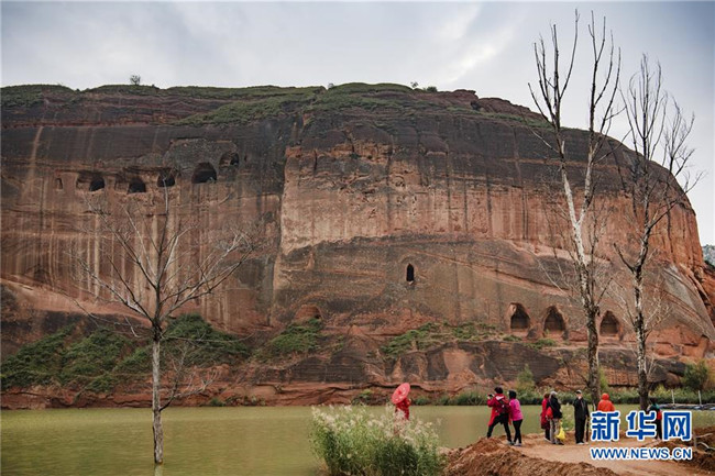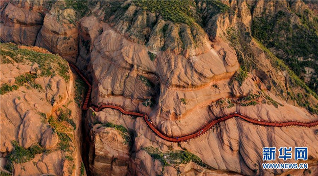 游人在靖边县龙洲镇波浪谷丹霞景区游览(9月26日摄)。新华社记者 陶明 摄