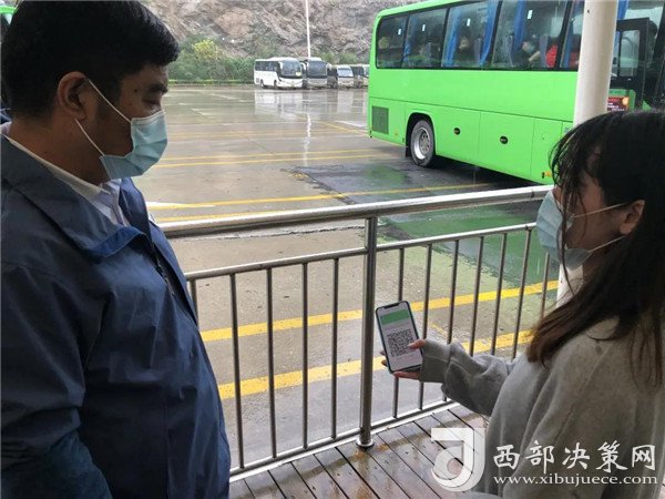 游客检票乘坐摆渡车去往索道前,客运工作人员对游客进行上车前扫码管理,确认游客健康码为绿码和体温正常,认真记录游客所乘坐车次,确保游客信息追溯可查,并时刻提醒游客在密闭车厢内保持戴好口罩。