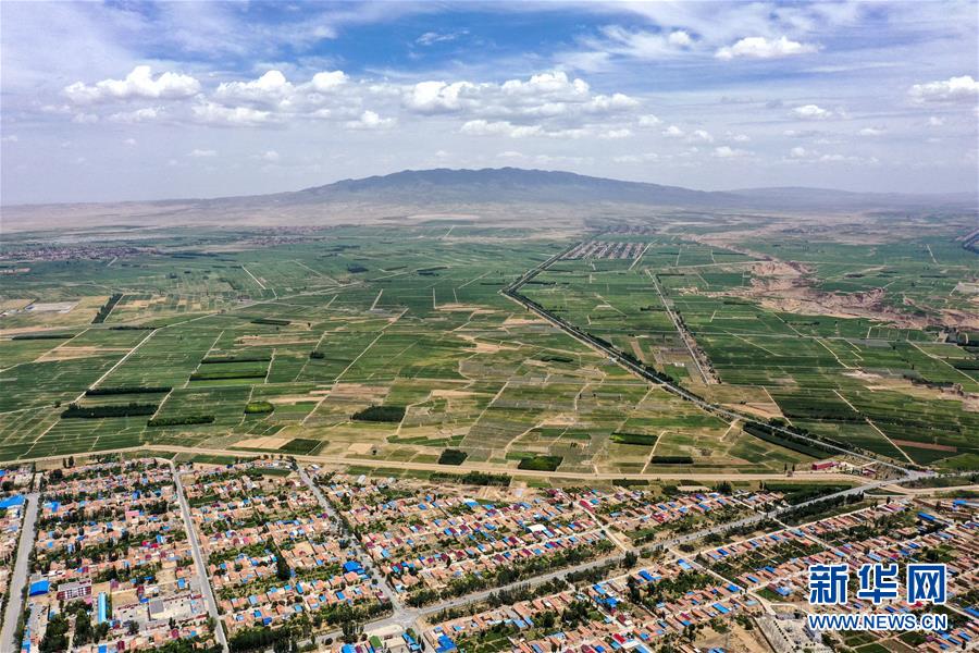 这是6月23日拍摄的位于罗山脚下的宁夏吴忠市红寺堡区一角(无人机照片)。新华社记者 冯开华 摄