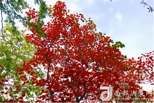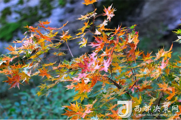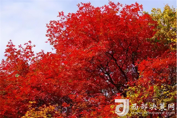 火红色、金黄色、翠绿色、各种颜色相互映衬