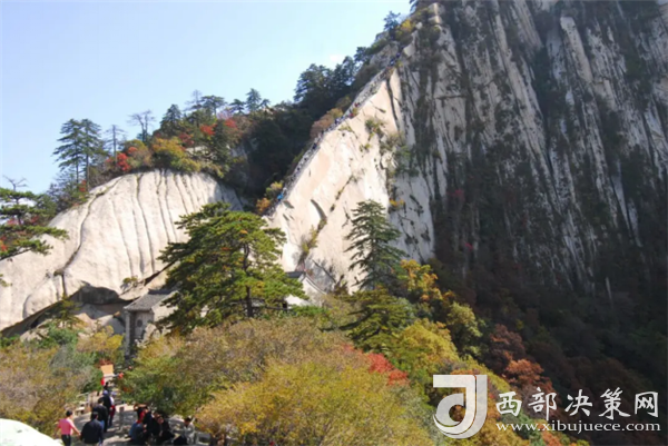 在深秋,翻飞的落叶伴着初雪装扮着整个华山