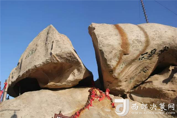 金元宝:下山到达北峰时,许多游人在正对着西峰的方向深深的作揖祈祷。顺着他们视线的那个方位看去,东峰和西峰两端翘起,和南峰饱满的凸起,简直就是一个硕大的金元宝高高伫立在山顶。所以,华山也称做“财富山”。
