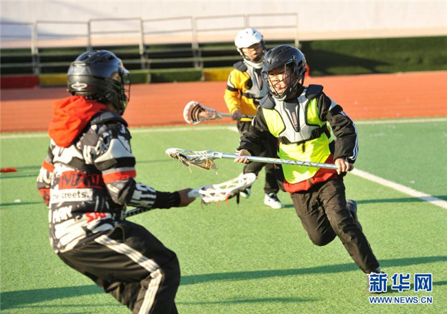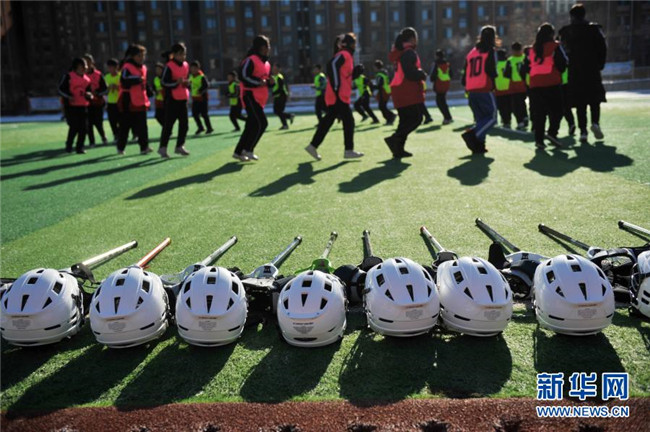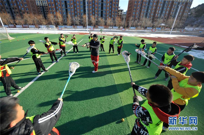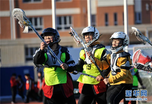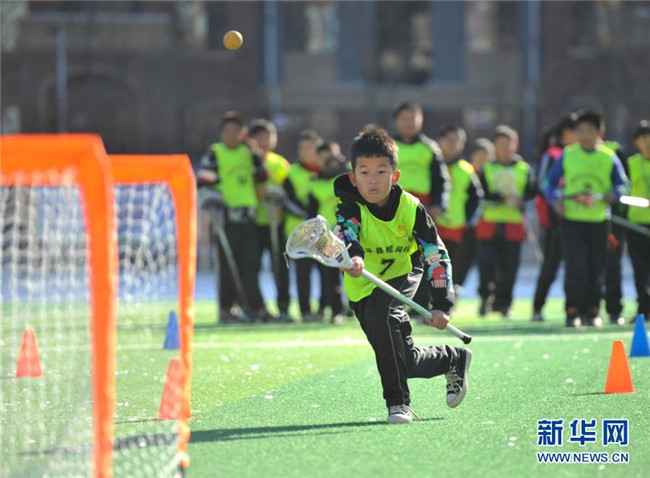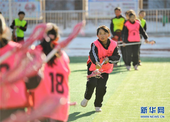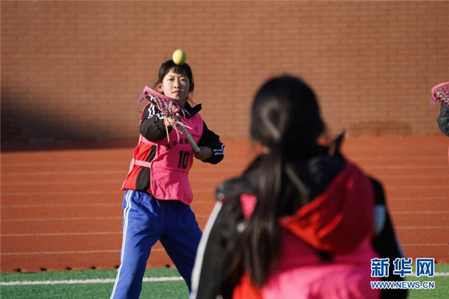 12月1日,在滦平县第五小学,棍网球队员在进行训练。新华社发(王立群 摄)