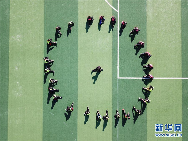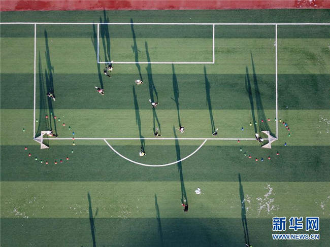12月1日,在滦平县第五小学,棍网球队员在进行训练(无人机照片)。新华社发(王立群 摄)