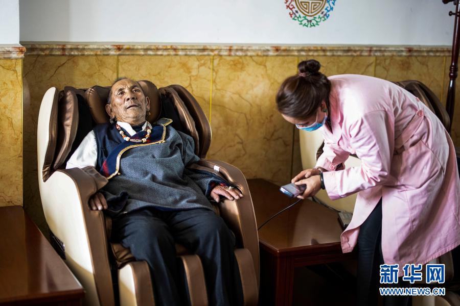 次旦在集中供养服务中心接受按摩服务(3月19日摄)。
