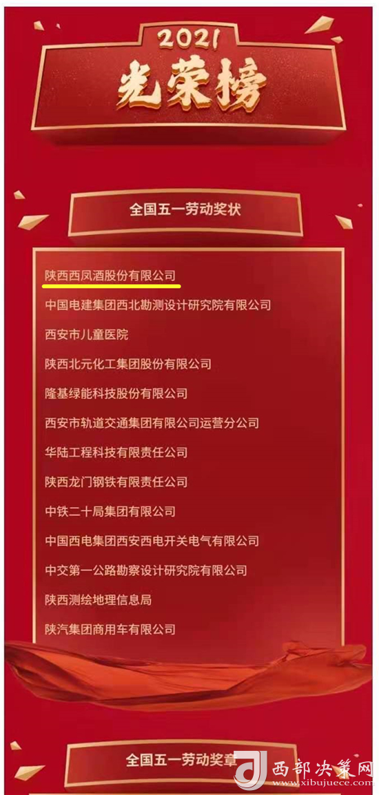 全国五一劳动奖状是中华全国总工会授予在抗疫斗争中挺身而出,在复工复产中坚定前行,在自立自强中勇攀高峰,用智慧和汗水在平凡的工作岗位上创造了不平凡的业绩,引领了劳动光荣、知识崇高、人才宝贵、创造伟大的社会风尚的先进集体,是中国工人阶级最高奖项之一。是对4000西凤人多年来奉献社会、艰苦奋斗、砥砺前行的高度评价与亲切鼓励。