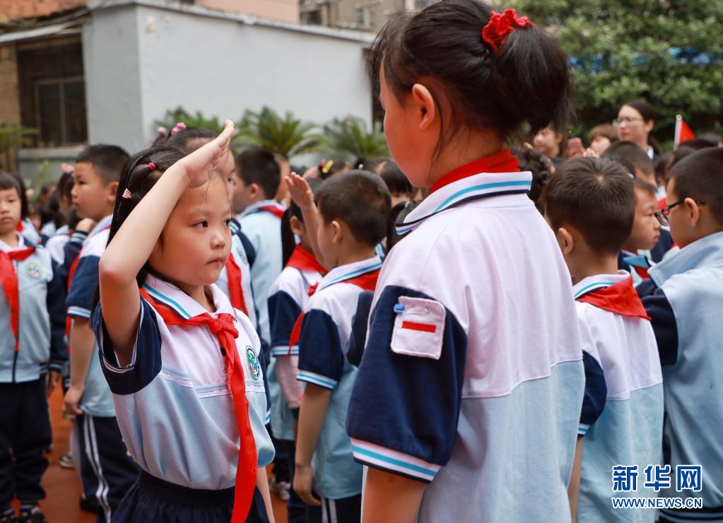 5月31日,南宁市滨湖路小学的学生参加入队仪式。新华社记者 曹祎铭 摄