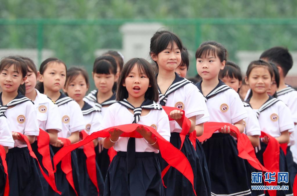 5月31日,少先队员们在入队仪式上宣誓。新华社记者 刘续 摄