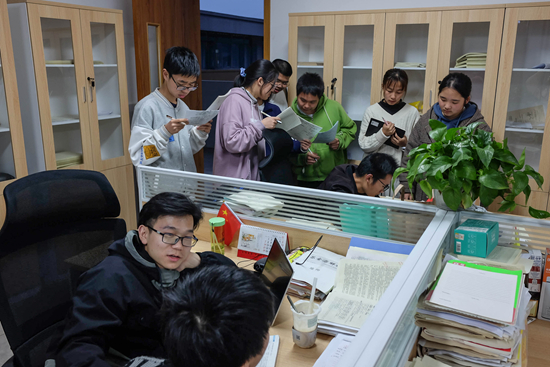 4月7日,晚自习时,学生们挤在办公室里找老师问问题。