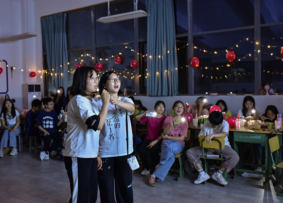 班上有15名学生来自同一个应届班级,这种陪伴在一定程度上缓解了他们的心理压力。和我的高中生活相比,这里轻松多了:不公开考试排名,不会将高考生排除在学校的文体活动之外,女孩子们可以化妆、留长发,还有人穿着汉服来上课。
