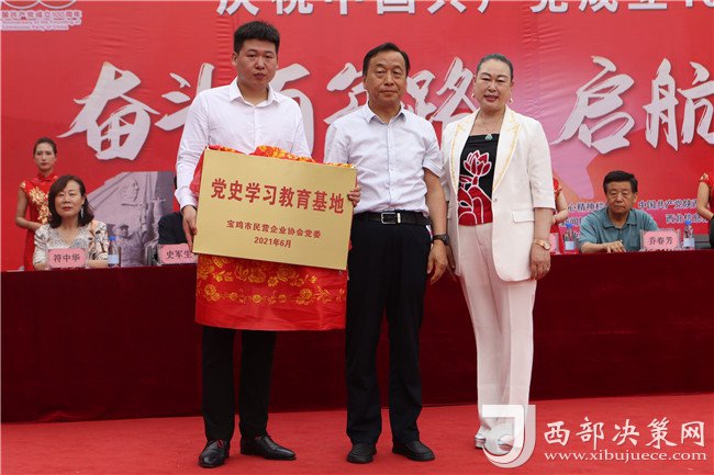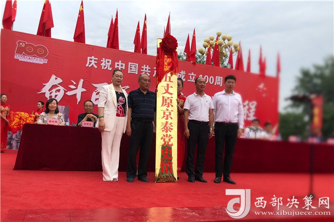 西部决策网讯(记者李乃斌)2021年6月23日,由中央广播电视总台——中央新影发现之旅频道匠心精神栏目组、中国共产党陕西京泰集团总支部委员会主办,陕西省纺织行业协会、宝鸡市民营企业协会、宝鸡市女企业家协会、宝鸡市老年科技工作者协会协办的“奋斗百年路 启航新征程”庆祝中国共产党成立100周年大会暨党史馆授牌仪式,在陕西五丈原京泰党史馆广场举行。