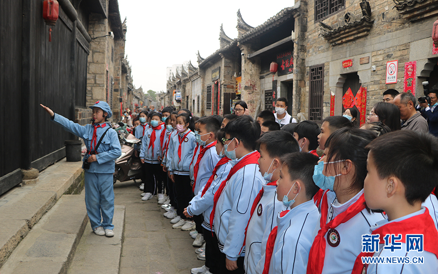 “我的家乡七里坪镇,是黄麻起义的策源地,是鄂豫皖苏区的中心地……”19日,在湖北省黄冈市红安县七里坪镇政治生活馆,七里坪镇中学八年级女学生秦菲深情讲述七里坪镇革命历史。