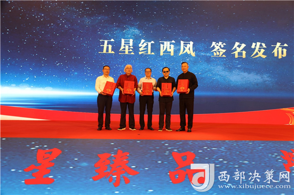 国务院首批特殊津贴专家、西北大学中国文明史研究院院长孙皓晖,陕西师范大学历史文化学院教授、博士生导师于赓哲,陕西省工信厅原副巡视员、陕西省轻工业协会原会长张鉴,西凤集团公司党委书记、董事长,股份公司董事长张正,陕西禧福祥商贸有限公司董事长王延安共同上台为五星红西凤签名,宣告五星红西凤正式上市发布,西凤酒的高端化之旅再上新台阶。