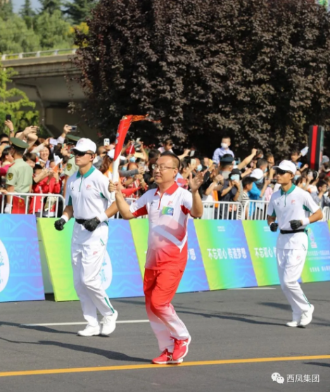 西部决策网讯(韩宗宪)中华人民共和国第十四届运动会、中华人民共和国第十一届残疾人运动会暨第八届特殊奥林匹克运动会火炬传递于9月4日在宝鸡市进行,西凤集团公司党委书记、董事长,西凤股份公司董事长张正载着五千名西凤人对国家体育事业的美好祝福,圆满完成火炬的传递。