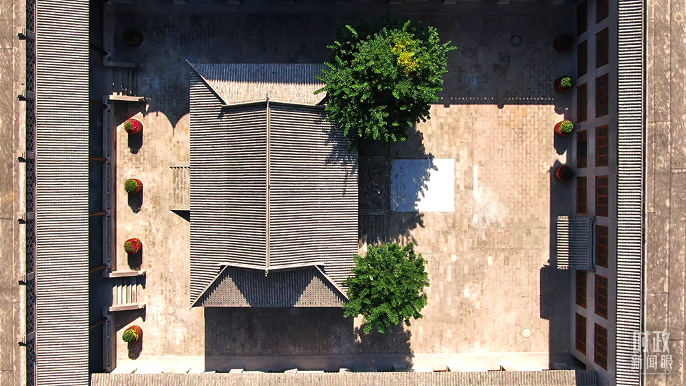 △从空中俯瞰,中共绥德地委旧址是一个方方正正的古朴院落。(总台记者赵振凯拍摄)