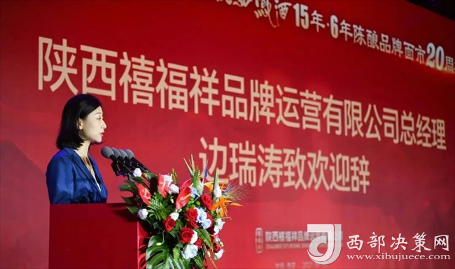 陕西禧福祥公司总经理边瑞涛致欢迎辞,就西凤酒15年6年陈酿品牌发展历程进行简要回顾:二十年来,王延安董事长一直将“振兴西凤”放在核心位置,陪伴西凤的复兴征程,而在此过程中,西凤酒15年6年陈酿也逐步实现了“从产品到品牌”的跃升。王延安董事长从最初创意策划运营西凤酒15年6年陈酿品牌,到共建西凤酒15年6年市场发展新格局,从经典的烟酒不分家,绝妙的商业创意奠定了产品赢得市场的基础……这一路走来,西凤酒15年6年品牌的营销网络从无到有,从有到强,渠道网络日趋完善,品牌二十年来,已累计销售161119200瓶,缔造了今天坚如磐石的合作伙伴,我们携手一步一个脚印,创造一个又一个辉煌业绩,涓滴细流的奋斗已融入西凤发展的大潮。