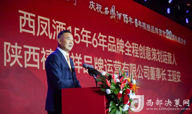 西凤酒15年6年品牌全程创意策划运营人、陕西禧福祥品牌运营有限公司董事长王延安发表讲话。王延安董事长对支持西凤酒15年6年陈酿品牌发展的西凤酒厂各级领导、全省合作盟友、供应商、媒体朋友及社会各界朋友表示感谢!风雨同舟20载,携手并进创辉煌。一切美好生活的实现都包含在“禧福祥”三个字里。