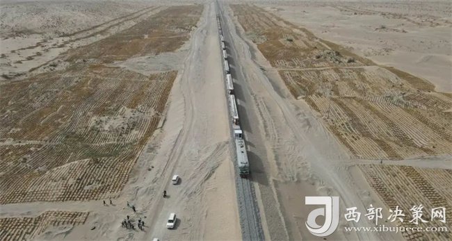 西部决策网讯 9月27日上午,在新建和田至若羌铁路新疆民丰县境内段的施工现场,随着直铺机将最后60米钢轨推进落地,由中铁第一勘察设计院集团有限公司总体勘察设计的和若铁路宣告铺轨完成,标志着世界上首条环沙漠铁路正式闭环。
