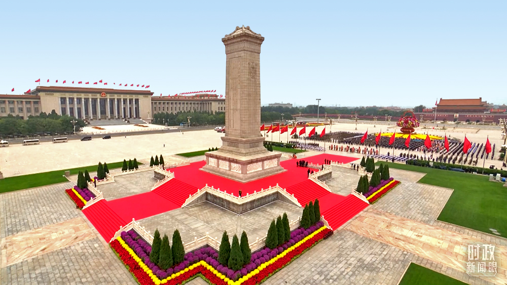 △2021年9月30日,北京天安门广场,敬献花篮仪式现场。(总台央视记者刘琦拍摄)