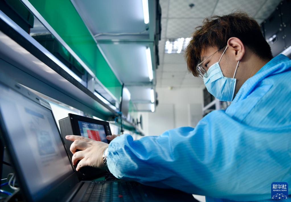 在京津中关村科技城,天津新松智能科技有限公司的员工在调试设备(2020年12月28日摄)。新华社记者 李然 摄