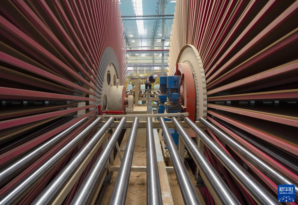 工人在唐山市曹妃甸区金隅天坛(唐山)木业科技有限公司的生产线上工作。该企业为北京金隅天坛家具股份有限公司全资子公司(2020年8月17日摄)。新华社记者 杨世尧 摄