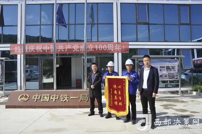 西部决策网讯10月18日,甘肃省天水市花牛镇卜王村党支部书记来到中铁一局四公司天水南北两山项目部,将一面绣着“心系百姓、传递真爱”的锦旗送到了参与抢通罗毛公路塌方道路项目党支部书记陈新全手中,并对全体参与抢险员工表示诚挚的感谢。