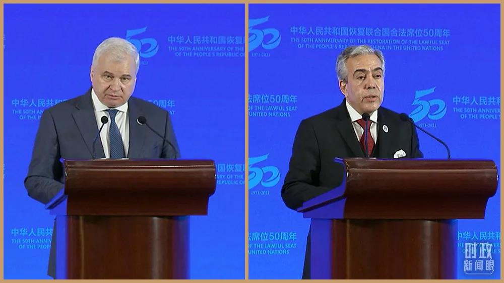 当天,习近平主席发表重要讲话。联合国秘书长古特雷斯、中国前常驻联合国代表王光亚,以及俄罗斯、阿尔及利亚两国驻华大使分别致辞。
