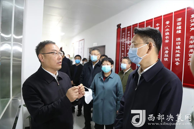 程福波一行视察了907车间、806车间、西凤酒文化馆、西凤酒大酒海和中国物流西凤现代物流园。调研中,张正向程福波汇报了西凤集团公司生产经营、技改项目、市场拓展、发展规划和西凤酒城建设等工作情况。