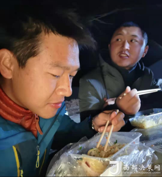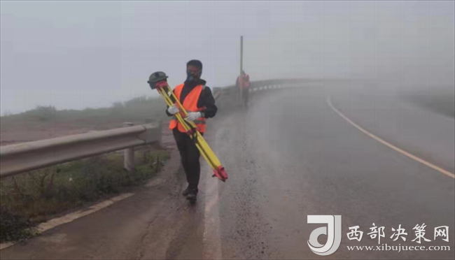 在进行二等水准测量时,进出口联测距离为50千米,不仅要面对国道上庞大的车流量,还要面对盘山路的大坡度、大雾的低能见度、突然来袭的雨雪天气以及雨雪过后的低温。二等水准的测量方式是步行,因为是高原,所以体力消耗特别大,山里又没有吃饭的地方,大家只能靠随身携带的面包、开水保证体能。然而即使面对如此困难的环境,大家依然不忘初心,按时完成了复测任务。